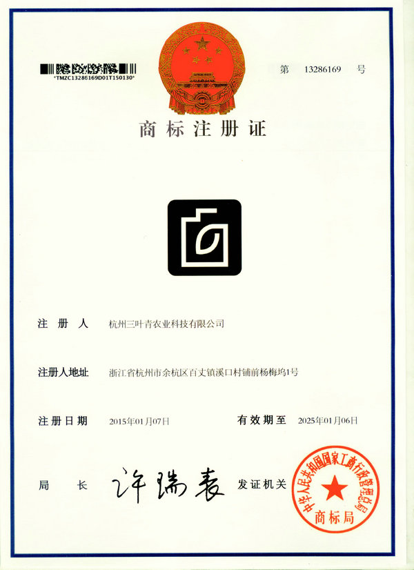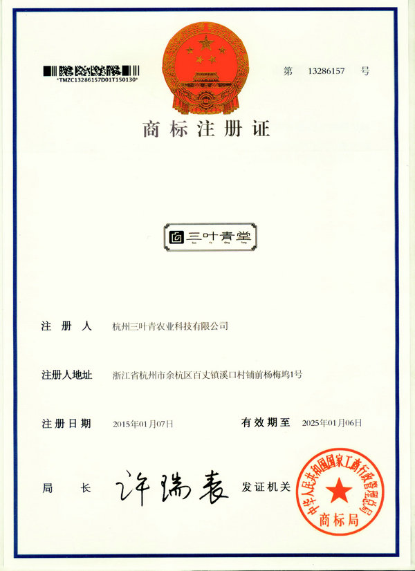 三叶青堂商标注册证